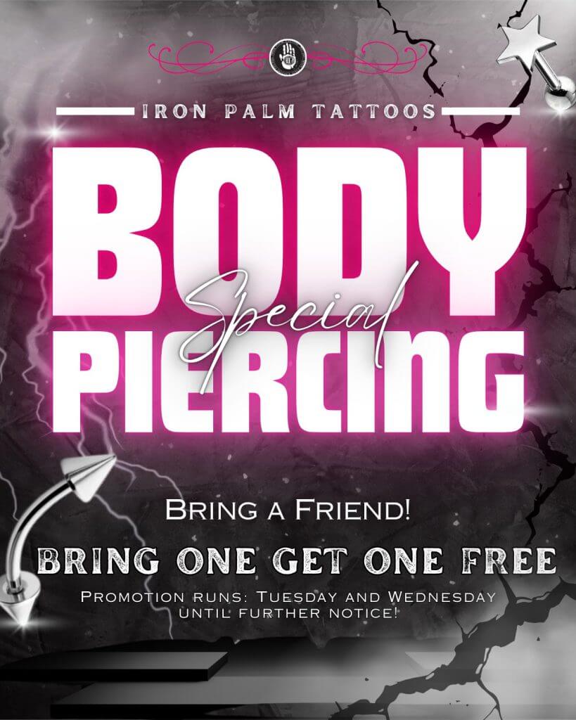 د اوسپنې پام دویمه او وروستۍ جمعه د ۲۰۲۴ کال لپاره د پیرودونکو د ۱۳مې ستاینې ځانګړې ډالۍ. د بدن ټول سوري کول $۱۳ او نیمایي تخفیف!
